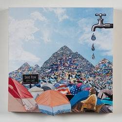 ![]() "Leaky Faucet II" 2018, Mixed media collage on wood panel, 12 x 12 x 1-5/8 inches | ![]() "Population: Too Many" 2018, Mixed media collage on wood panel, 8 x 4 x 1-1/2 inches | ![]() "Tiny" 2018, Mixed media collage on wood panel, 8 x 4 x 1-1/2 inches |